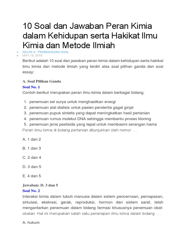Contoh Soal Kimia Kelas X Semester 2 Beserta Pembahasannya Contoh Soal Terbaru