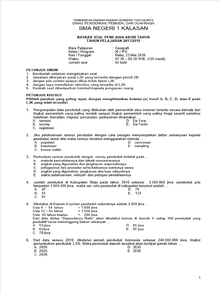 Download Soal Pat Ukk Geografi Kelas Xi 11 Sma 2018 Pdf Doc