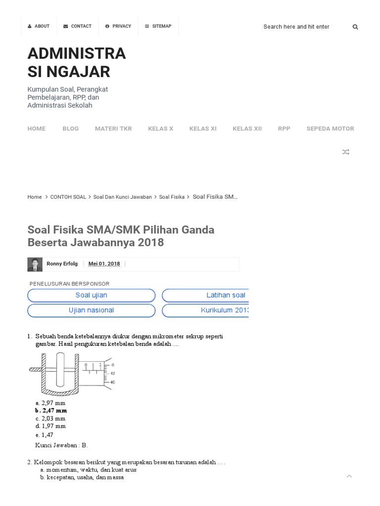 Soal Fisika Sma Smk Pilihan Ganda Beserta Jawabannya 2018 Administrasi Ngajar